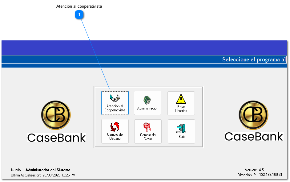 Para aplicar una promoción a un referido en el sistema Casebank, deberá entrar primero a “Atención al cooperativista” en la pantalla principal del sistema,