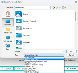 Del listado que aparece en la parte inferior donde se selecciona el tipo de imagen o formato, deberá seleccionar JPEG Files(jpg). Tal como se muestra a continuación: