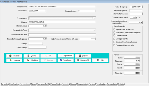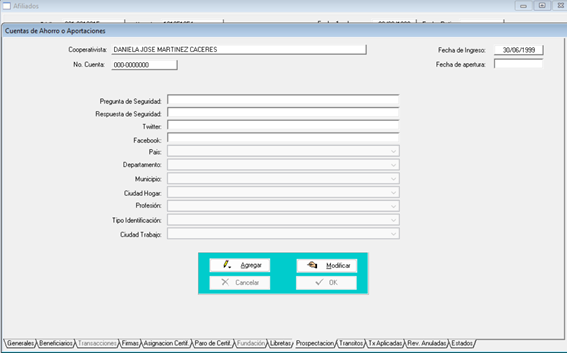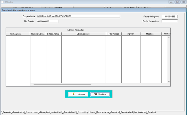 Luego de seguir los pasos para abrir una cuenta nueva al afiliado mencionadas anteriormente, se debe dirigir al botón