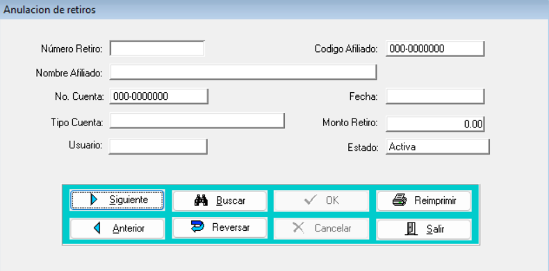 En este apartado se podrá consultar o anular retiros de cuenta de los afiliados.