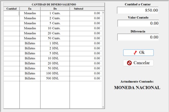 Deberá repetir los pasos anteriores desglosando la cantidad de dinero que le está entregando al afiliado. Siempre verificar que la diferencia sea cero y que la cantidad a contar sea igual que el valor contado.