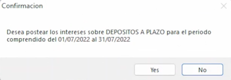 Es importante mencionar que este posteo debe realizarse con los 30 días calculados para que el sistema permita realizarlo, es decir, hacerlo en el último día del mes.