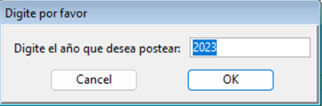 A continuación, deberá ingresar el año que desea postear y presionar el botón “Ok”. Luego el sistema mostrará la pantalla de confirmación y deberá seleccionar “Yes”: