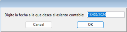 Seguidamente, ingresar la fecha a la que desea el asiento contable como se muestra a continuación y presionar “Ok”:
