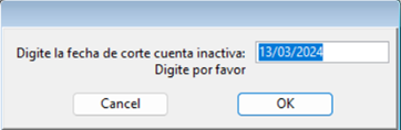 Luego, ingresar la fecha de corte de las cuentas inactivas: