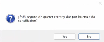 Para guardar lo realizado si por ejemplo, por este día desea salir de la conciliación pero no ha terminado con todas las transacciones, presionar el botón “Ok”. No se considera cerrado hasta no presionar el botón “Cerrar”.