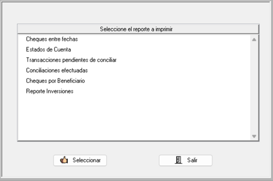 Luego, deberá seleccionar qué tipo de reporte necesita de la lista que aparece en pantalla, y presionar el botón “Seleccionar”