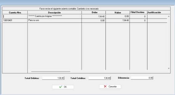 Si necesita agregar o modificar el número de cuenta, descripción, o cualquiera de las casillas, puede hacerlo en este momento. Para guardar, presione el botón “Ok”.