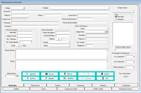 En esta pantalla podemos observar diferentes pestañas con las cuales iremos trabajando de acuerdo con lo que se necesite: