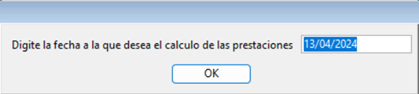 Luego ingresar la fecha para la cual desea realizar el cálculo: