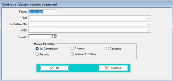 En esta ventana podrá observar los puestos que ha ocupado este empleado, o si ha sido trasladado de filial o de cargo.