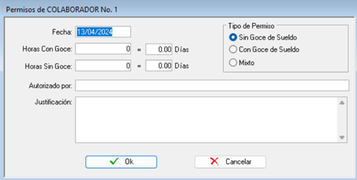 - Para agregar un nuevo permiso, presione el botón “Agregar” e ingrese la información solicitada: