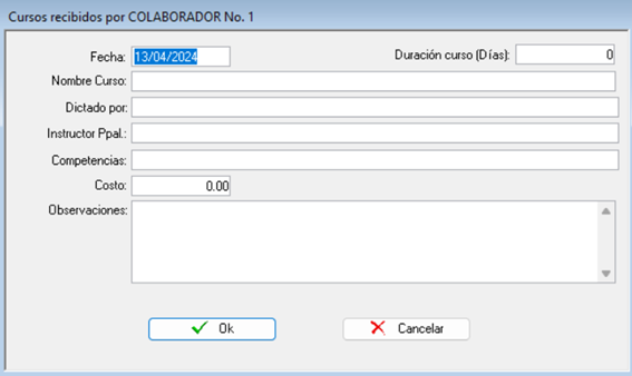 En esta pestaña se pueden visualizar los diferentes cursos o formaciones que el empleado ha recibido: