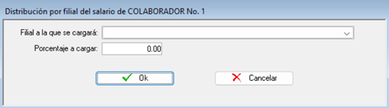 En esta pestaña se puede realizar una distribución proporcional del salario de un colaborador en otra filial.