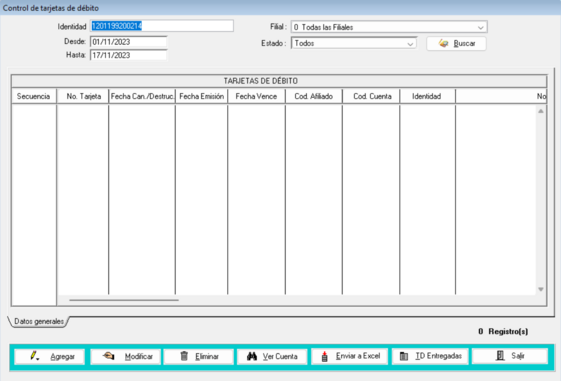 - Para visualizar el listado de tarjetas de débito entregadas, debe presionar sobre el botón