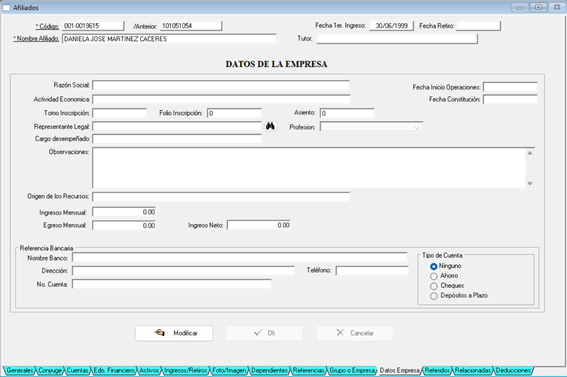 Y por último a “Afiliación”
