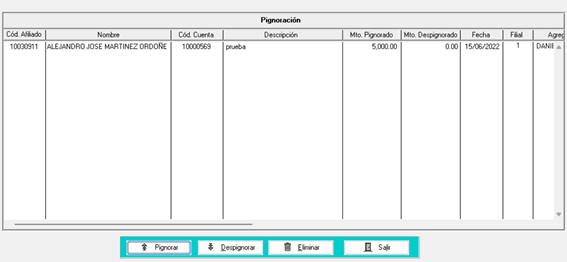 - Para pignorar un monto, deberá presionar el botón