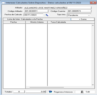Al estar en esta ventana, deberá ingresar el tipo de interés que desea visualizar y la fecha de cálculo. Automáticamente el sistema le mostrará en pantalla lo solicitado.