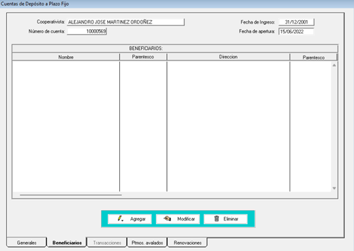 Luego de seguir los pasos para abrir una cuenta nueva al afiliado mencionadas anteriormente, se debe dirigir al botón