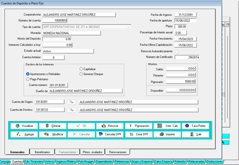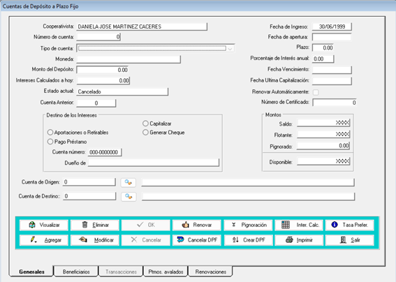 En esta pantalla principal, se puede visualizar toda la información general sobre la cuenta de depósito a plazo fijo.