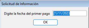 Luego presionar sobre el botón “Seleccionar” e ingresar la fecha del primer pago como se muestra a continuación: