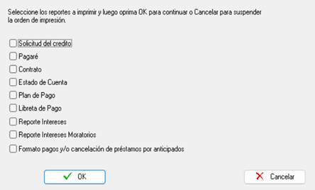 se generan los diferentes reportes que se pueden imprimir en el apartado de préstamos, los cuales se presentan a continuación:
