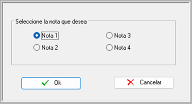 A continuación, deberá seleccionar el tipo de nota de crédito a realizar, al hacer esto, el sistema solicitará digitar la fecha a la que desea los intereses y la cantidad de días que le dará a la nota. Luego deberá presionar sobre el botón “OK” y se enviará al destino que usted seleccione en la siguiente pantalla: