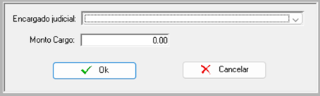 En la lista desplegable deberá seleccionar quién es el encargado judicial en ese caso y cual es el monto del cargo y luego presionar “Ok”