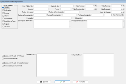 Luego de tener esta información deberá seleccionar si este es un aval fiduciario, hipotecario o solidario en las opciones del lado derecho de la pantalla, así como ingresar cuanto es el monto que avala en la casilla del lado izquierdo. Luego de verificar que todo esté ingreso correctamente, deberá presionar sobre el botón “OK” y ya quedará guardado.