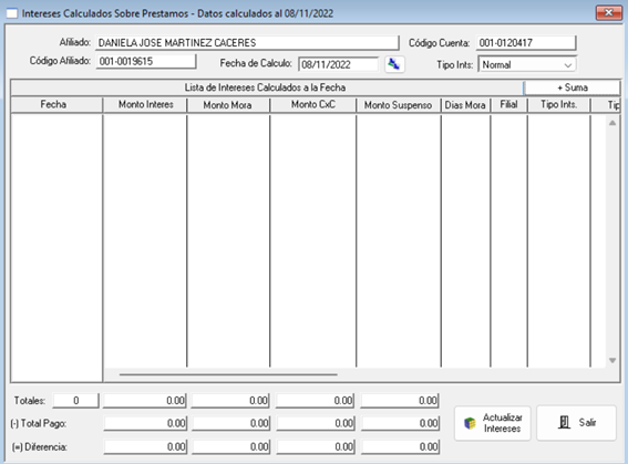 - Para visualizar los intereses calculados, deberá presionar el botón: