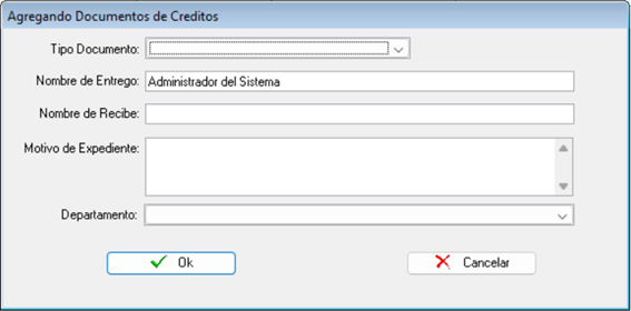 Al estar aquí, debe ingresar toda la información solicitada en las casillas, el tipo de documento, el nombre de la persona que entregó esta información (generalmente el afiliado), el nombre de la persona de la cooperativa que recibe, el motivo del expediente (pequeña observación o comentario) y el departamento donde se realiza.