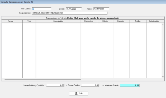 b. Consultar las transacciones en tránsito de las tarjetas de débito