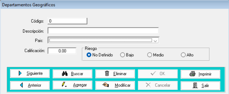 - Para buscar y/o modificar un departamento, simplemente seleccione el botón 'Buscar' y/o navegue utilizando los botones 'Anterior' y 'Siguiente' hasta ubicarlo. Una vez encontrado, presione 'Modificar' para realizar los cambios necesarios. Por último, guarde los cambios presionando 'Ok'.