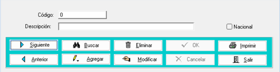 - Para agregar una nueva nacionalidad, presione el botón “Agregar” y en descripción, agregue el nombre de esta nacionalidad.