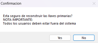 Al finalizar el conteo, el sistema ya habrá realizado la reconstrucción de las llaves primarias.