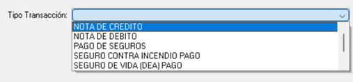 En esta pantalla, deberá en primer lugar presionar el botón de “Agregar” y luego seleccionar el tipo de transacción de la lista desplegable: