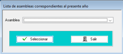 Esta acción abrirá la siguiente pantalla, en la cual deberá seleccionar de la lista desplegable la asamblea correspondiente: