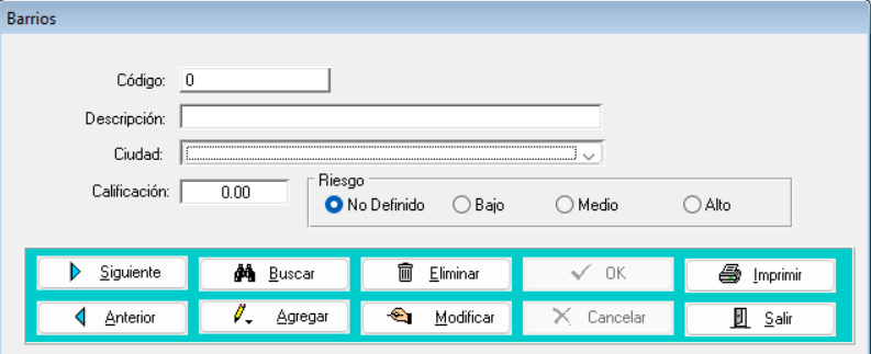 - Para buscar y/o modificar un barrio o colonia, simplemente seleccione el botón ‘Buscar’ y/o navegue utilizando los botones ‘Anterior’ y ‘Siguiente’ hasta ubicarlo. Una vez encontrado, presione 'Modificar' para realizar los cambios necesarios. Por último, guarde los cambios presionando 'Ok'.