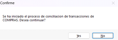 Presionando el botón “Yes”, el sistema le solicitará la ubicación del archivo de compras, y usted deberá buscarlo en su computador y seleccionarlo. La conciliación se realiza automáticamente cuando indica el archivo.