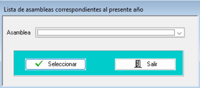 Esta acción abrirá la siguiente pantalla, en la cual deberá seleccionar de la lista desplegable la asamblea correspondiente:
