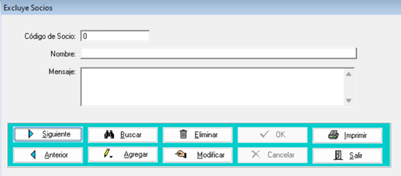 Si desea agregar un mensaje para que aparezca si alguien intenta incluir a este socio, diríjase al botón “Modificar” y escribir el mensaje en la casilla correspondiente y finalmente presionar el botón “Ok”.