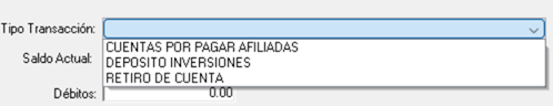 En esta pantalla, deberá en primer lugar presionar el botón de “Agregar” y luego seleccionar el tipo de transacción de la lista desplegable: